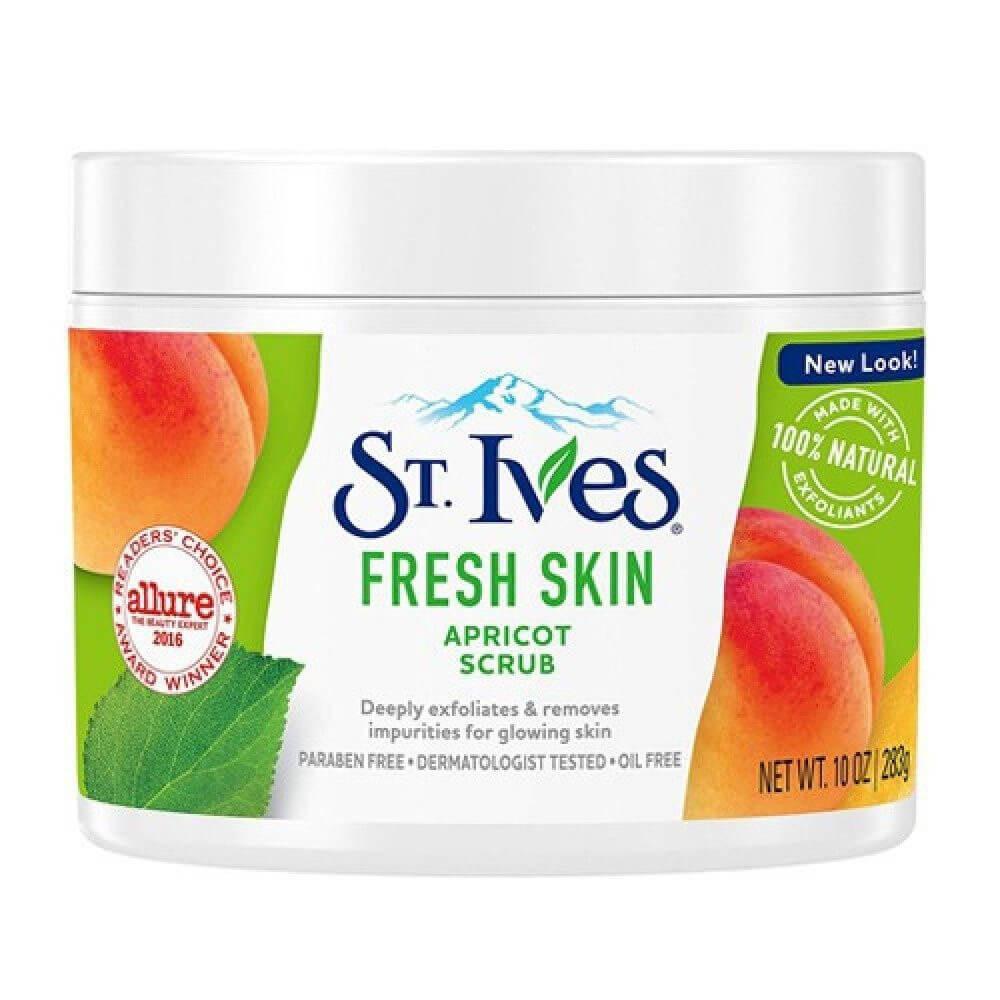عند الانتهاء ، يشطف بالماء ويتم الترطيب بمرطب الكولاجين والايلاستين المجدد للبشره من نفس الشركه سانت ايفز لافضل النتائج.