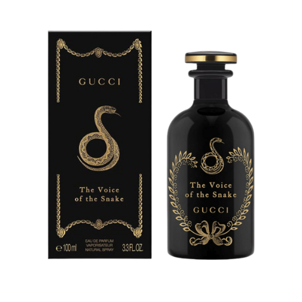 عطر The Voice of the Snake هو تحفة فنية من مجموعة قوتشي الفاخرة The Alchemist s Garden (حديقة الخيميائي) وهو مصمم ليكون تجربة حسية عميقة للجنسين يجسد العطر الطبيعة الغامضة والساحرة للأفعى رمزاً للحكمة والقوة والخلود