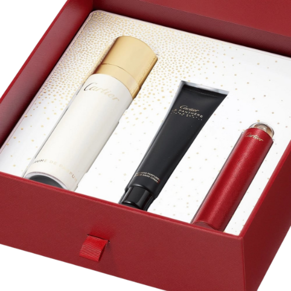 طقم كارتير لا بانتير للنساء هو مجموعة فاخر من الاخر اهدي من تحب من العطور ومنتجات العناية بالجسم، مستوحاة من عطر لا بانتير الأيقوني. إليك وصفًا شاملاً لهذا الطقم: